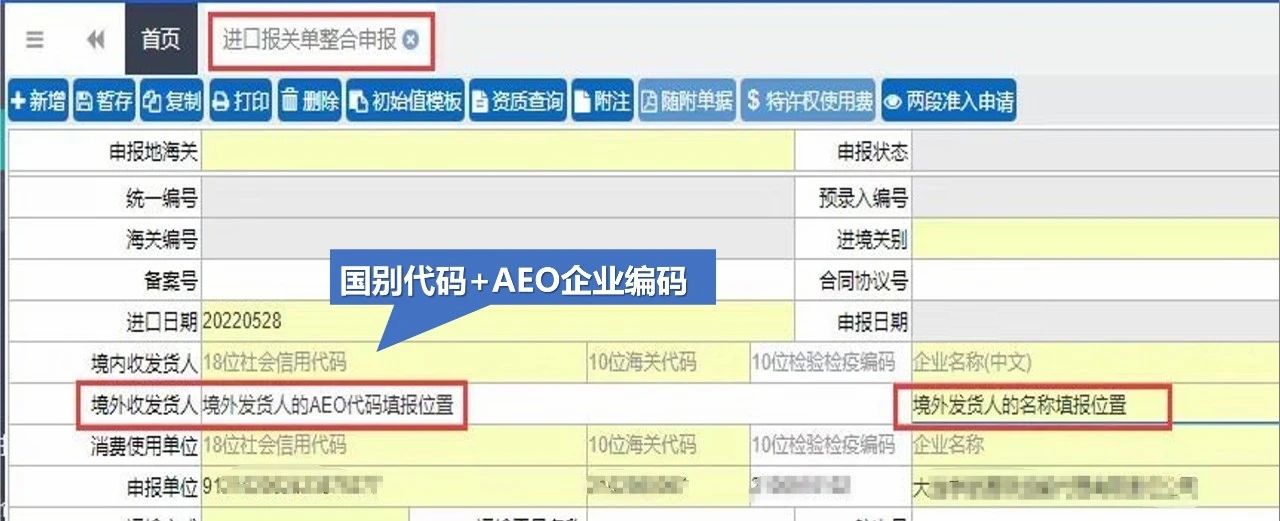 按照《海关总署关于明确“经认证的经营者”(AEO)企业编码填报规范的公告》(公告〔2018〕131号)要求,国内企业进出口时,需在舱单“收发货人AEO企业编码”栏目和报关单“境外收发货人”栏目中正确填写境外收发货人AEO企业编码(中国企业为失信企业的,无法享受互认便利措施)